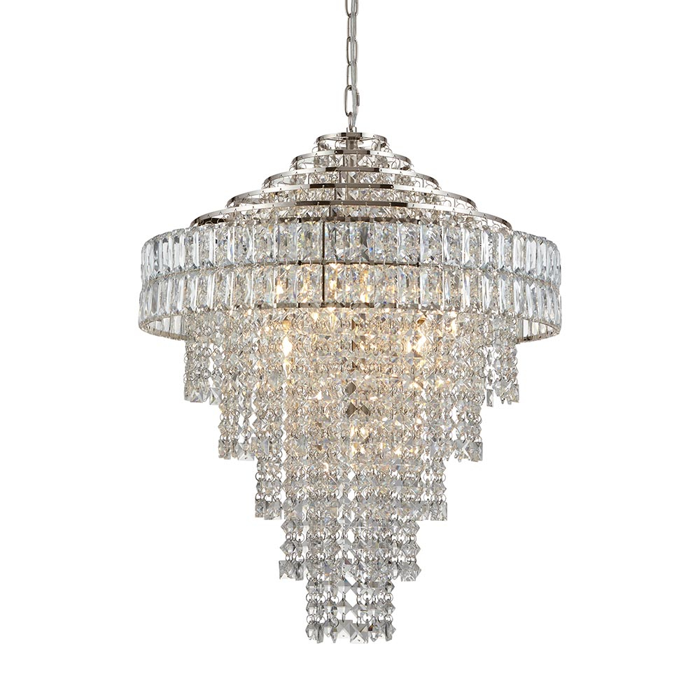 A stunning tiered 7 tier hanging chandelier ceiling light .Bright nickel 7 light tiered pendant with clear crystal glass.